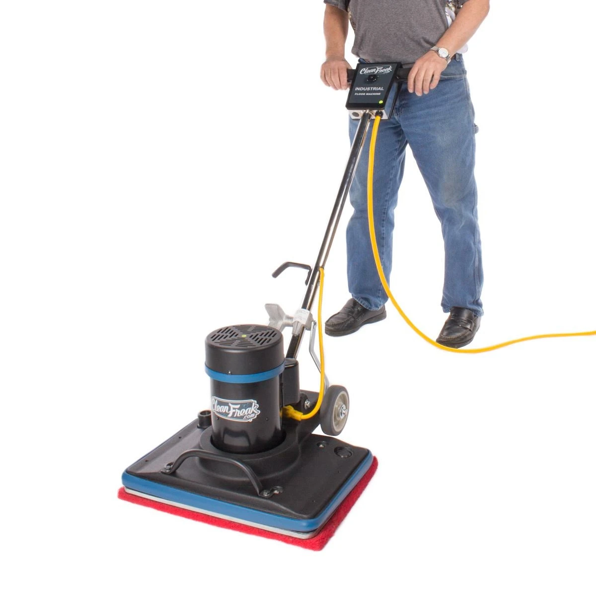 This CleanFreak machine itself comes with 1 red spacer pad to be used with extremely thin pads like our Eco-Prep maroon strip pads. For other floor scrubbing options, please take a look at our full line of floor machines, which contains the 28″ version of this machine. We also offer a full line of floor pads for your cleaning needs.